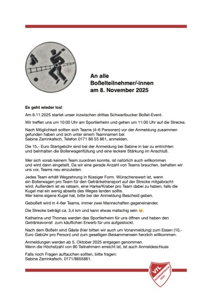 08.11.2025 | Boßeln in Schwartbuck | 11.00 Uhr |